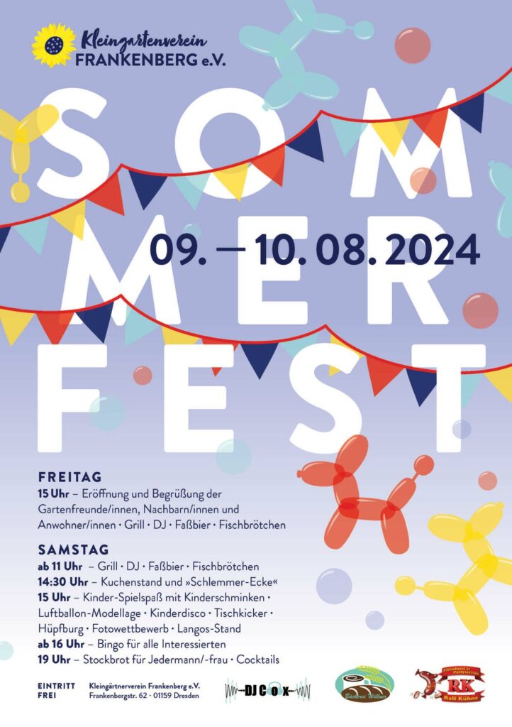 Liebe Gartenfreunde:innen, Nachbar:innen und Anwohner:innen, wir laden euch herzlich ein zu unserem diesjährigen Sommerfest am 9. und 10. August: